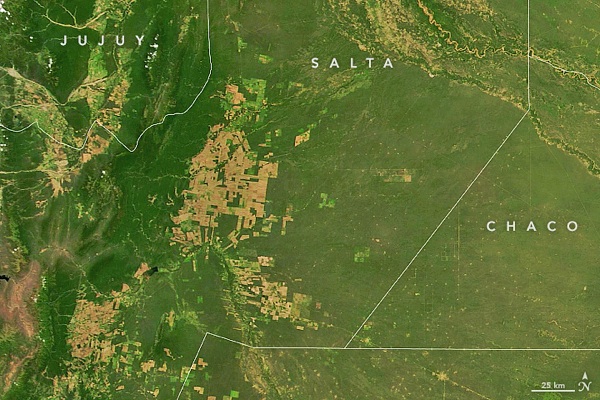 El Gran Chaco es el segundo bosque en tamaño y biodiversidad de América del Sur después de la selva amazónica. Tienen distintos climas: el primero semiárido, el otro húmedo. Los dos, sin embargo, sufren similares acciones depredadoras: la rápida deforestación. Con este argumento, la agencia espacial estadounidense eligió el último miércoles como su “imágen del día” fotos satelitales del Chaco que muestran cómo el hombre –ciertos hombres– arrasan con su vegetación autóctona, y con ello también ponen en peligro su fauna, a la par de promover cambios climáticos cuyas consecuencias se verifican a miles de kilómetros.